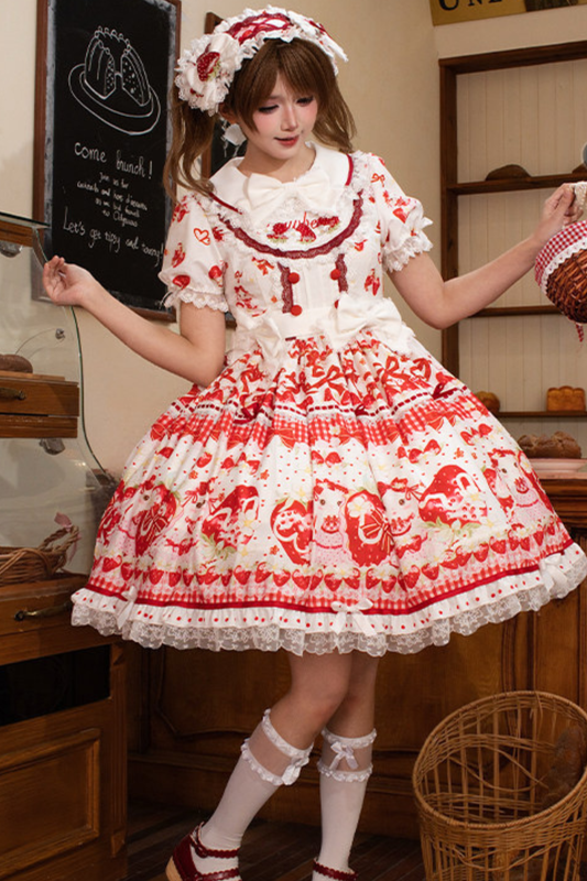 レッドベリーロリータドレス+リボン+ヘアバンド