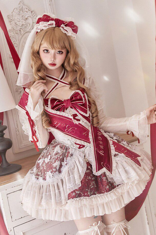 スイートバロックロリータドレス+ベール+リボン+カチューシャ+テール+スリーブ