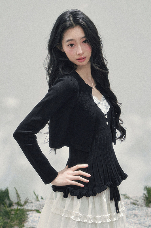 【3月6日予約締切】ダークゴシックブラックショートジャケット+ホワイトシャツ+ローズリボン