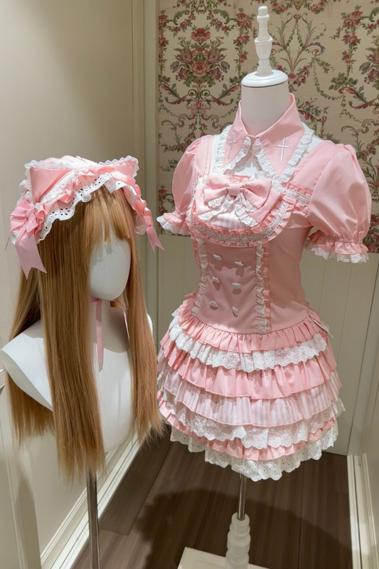 ピンキープリンセスケーキトップス+スカート+スリーブ+ヘアバンド