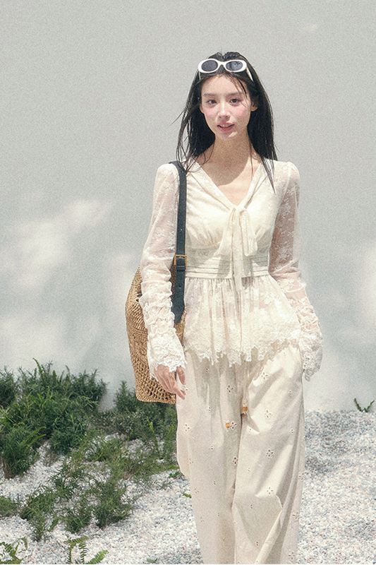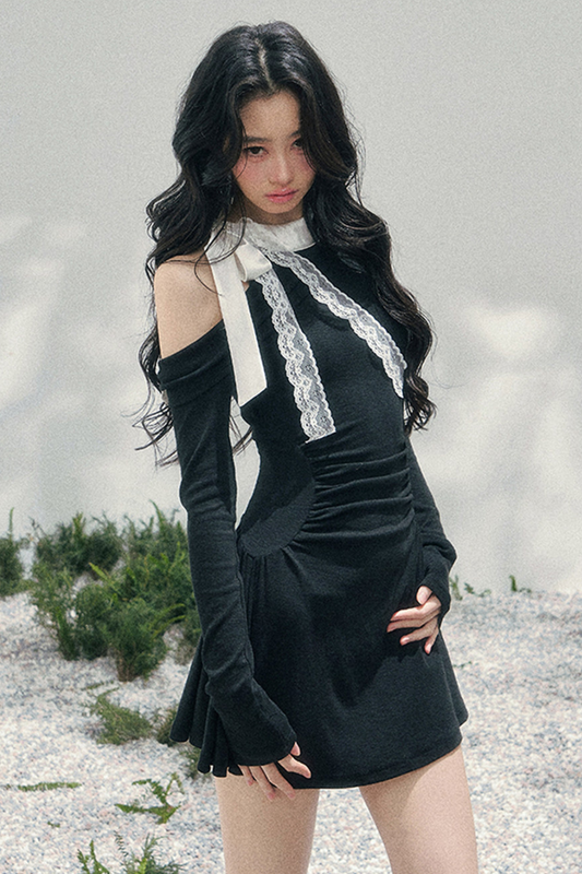 リボンオフショルシャツ+エレガントマーメイドスカート