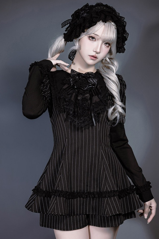 【3月25日予約締切】クロスノクターンゴシックダーク・ストライプレイヤードトップ+クロスローズ・ストライププルアップスカート