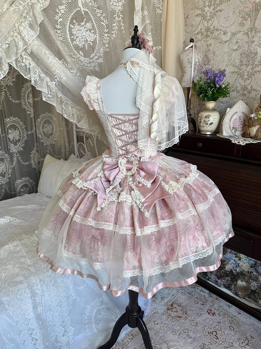 ヴィンテージロリータパフスリーブトップス+アシメスカート+コルセット