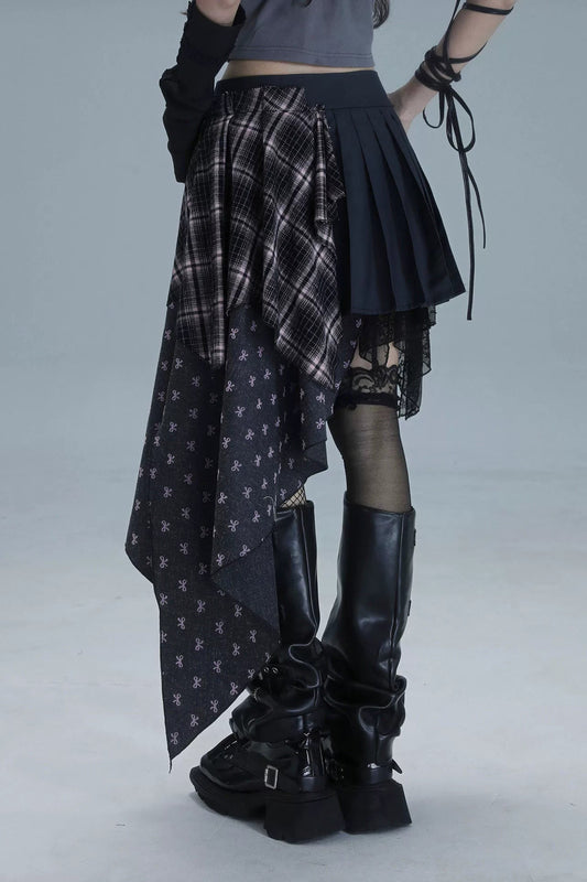 レッドチェックアシンメトリカルミニスカート+レッグウォーマー