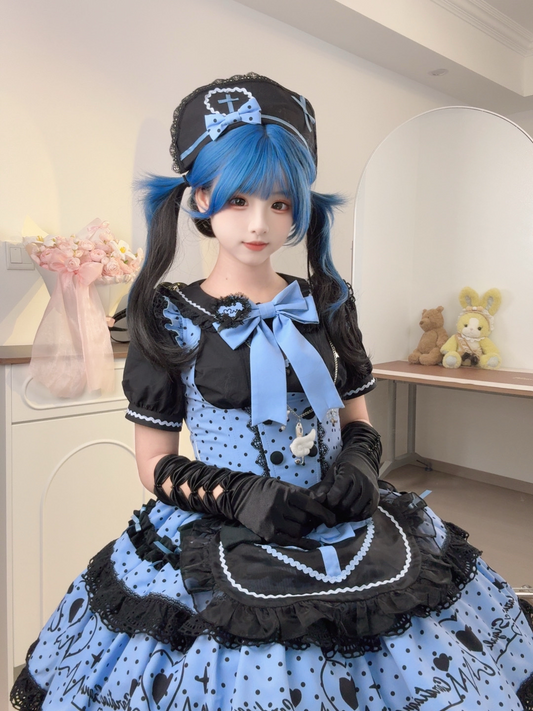 ゴシックスーパーゴージャスジスリーブロリータシャツ+フリルスカート+ハット