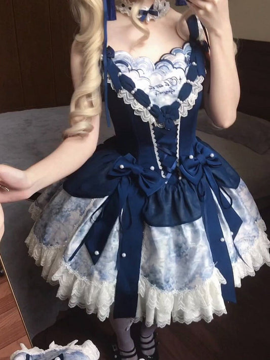 【5月6日予約締切】ダークブルームーンライトシーエレガントレースリボンレイヤードドレス+アクセサリー