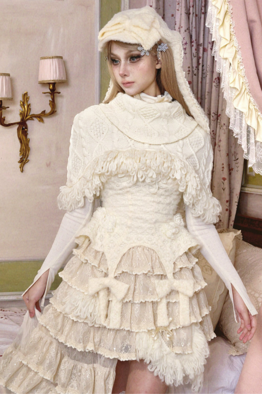 ベルベットベアフードケープ+トップス+サスペンダースカート+レッグカバー