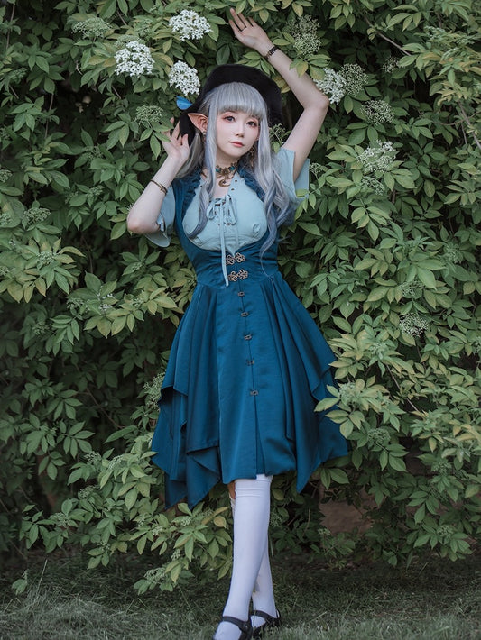 ダークピーコックグリーンレトロロマンチックノースリーブベストドレス