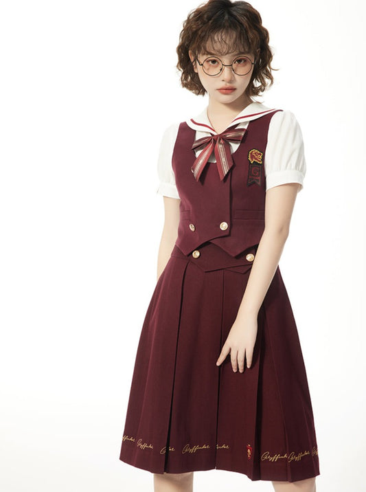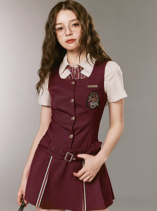 Vネックカレッジサススカート+ワンポイントショートシャツ