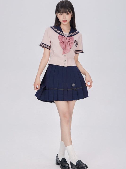 カレッジセーラートップス+ハイウエストスリム Aラインスカート