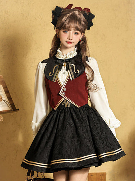 クラシックコンダクターシャツエンブロベストジャカードスカートセットアップ