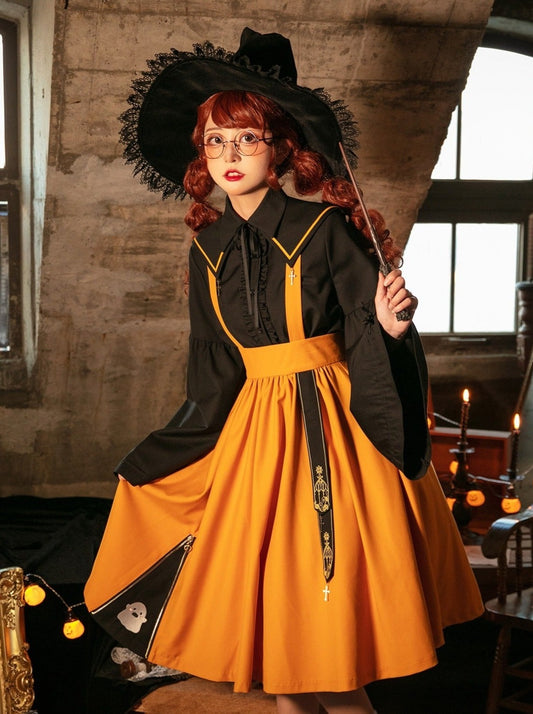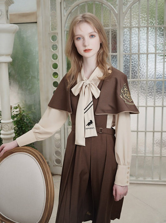 チャイナジャンパースカート+ラッパブラウス+ケープ+ファースカーフ+タッセルアクセサリー