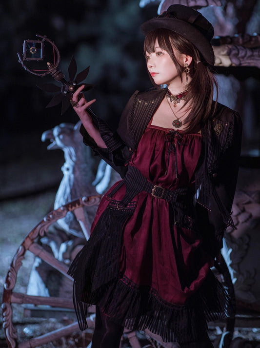 【予約商品】ワインレッドショルダーストラップライトゴシックドールアシメドレス