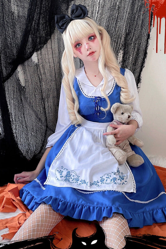 パフスリーブメイドドレス+エプロン+カチューシャ4点セット