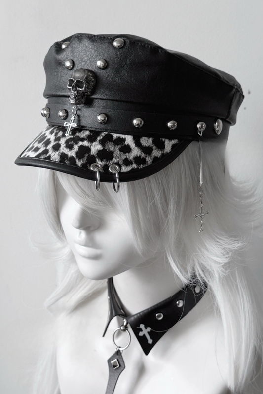 ダークリベットY2Kレザーバックルサブカルチャーキャップ