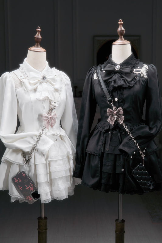 【予約商品】レースバックルショルダーロングテールライトゴシックリボンシャツ
