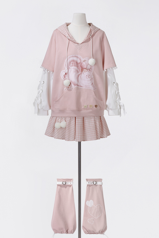 スイートキャットフードトップス+スカート+レッグウォーマー