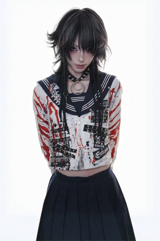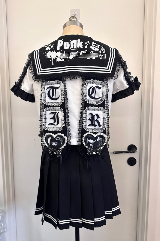 サブカルチャースクールセーラーパンクトップス+プリーツスカート