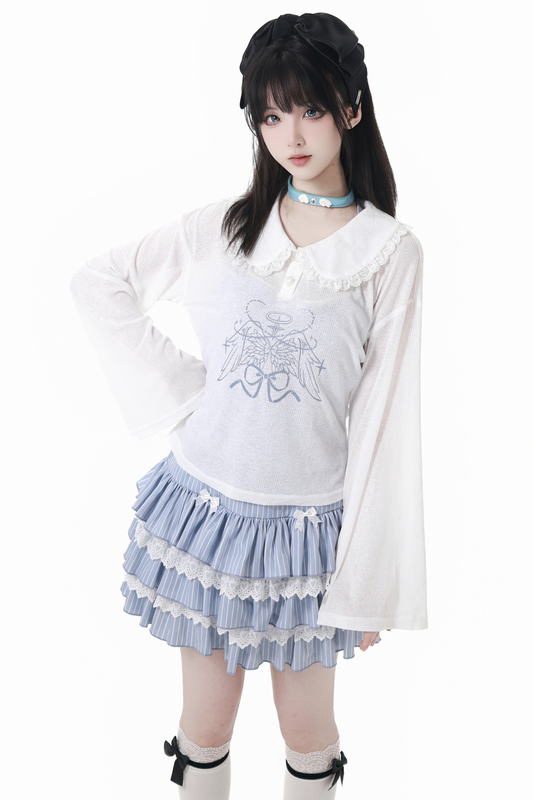 パステルスイートツインスカーフ付きTシャツ+パフスカート+アームカバー