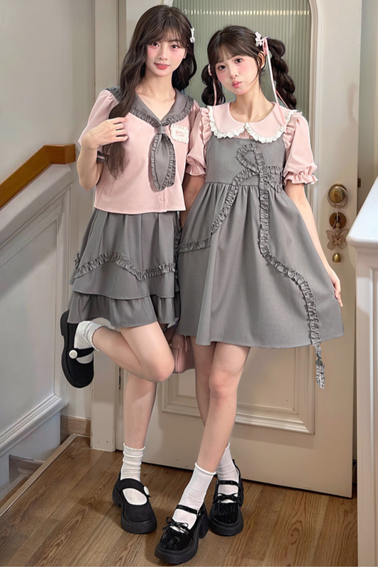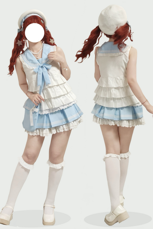 セーラーリボンマリントップス+プリーツレイヤードスカート