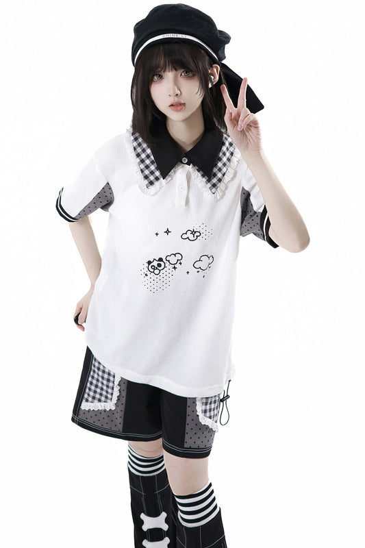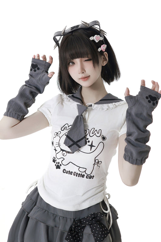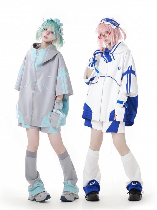 サブカルカップルトップス+フードトップス+スカート+ハーフパンツ+レッグウォーマー