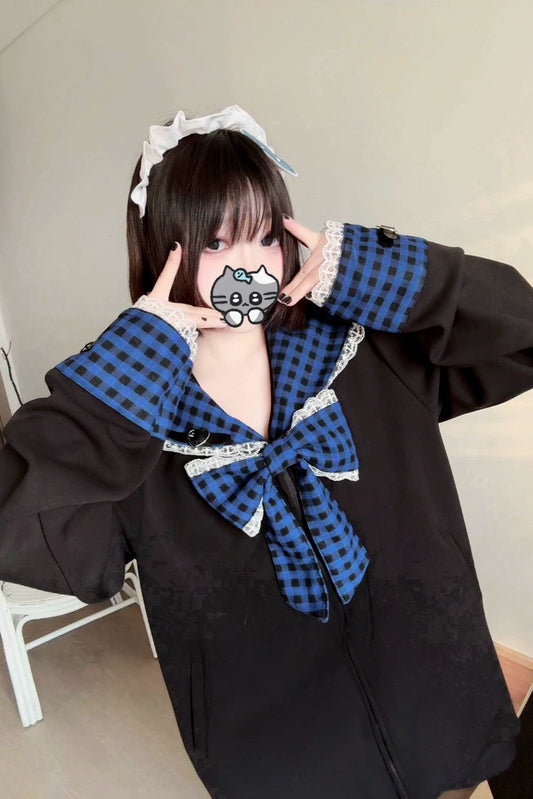【予約商品】バニーロックスターガールフード付きジャケット+ブラウス+チェックスカート