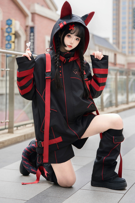 サブカルサイバーモードジャケット+ショートパンツ+レッグウォーマー+ヘアアクセサリー
