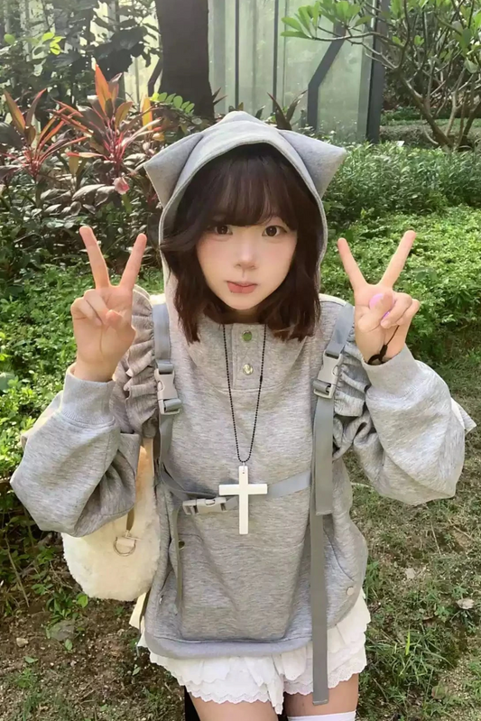 【予約商品】猫耳フーディーフリルストラップ2WAYパーカー