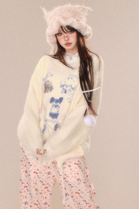 ソフトミルキーファーアニマルデザインニット