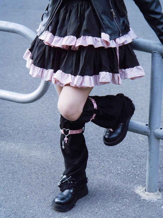 クロススタッズベルトリボンサブカルレッグウォーマー