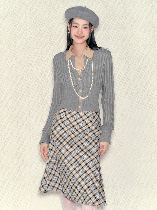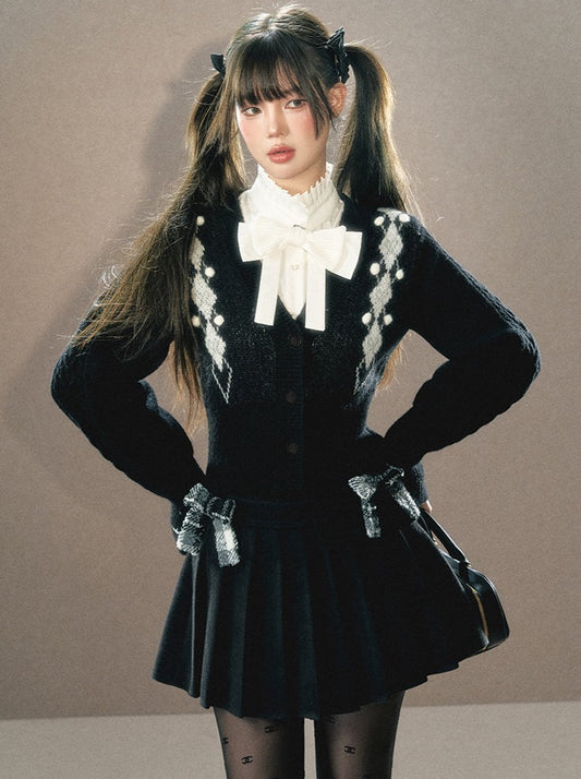 アンダーパスアーガイルニットカーディガン+リボンシャツ【予約商品】