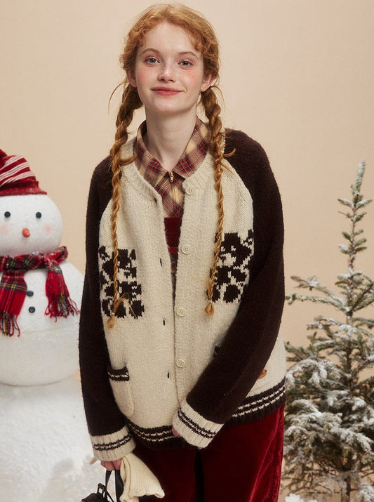 アメリカンレトロプレッピーラビットニットカーディガン