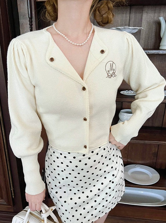 レトロガーリーパフスリーブニットカーディガン【予約商品】