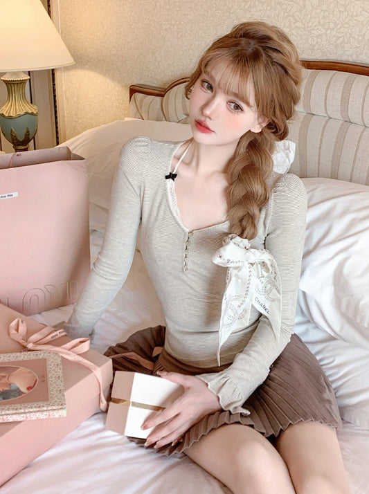 スイートインナーバレエスタイルVネックトップス