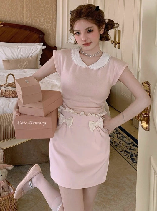 オフホワイトスイートリボンシックベルスリーブトップス【予約商品】