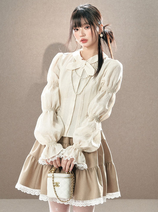 ガーリーフェアリーデザインフレンチスプリングシャツ