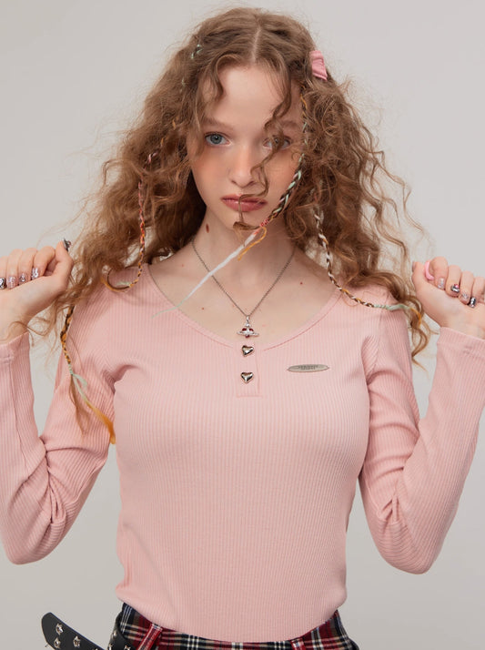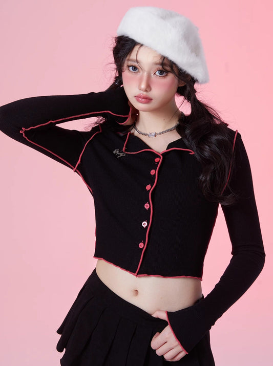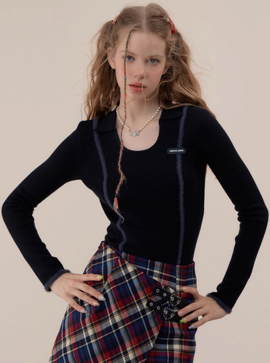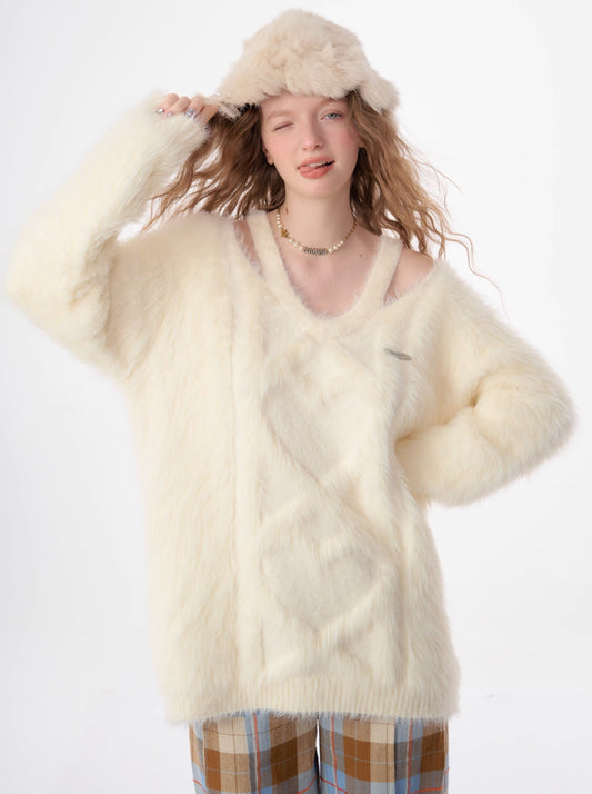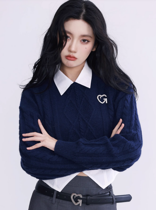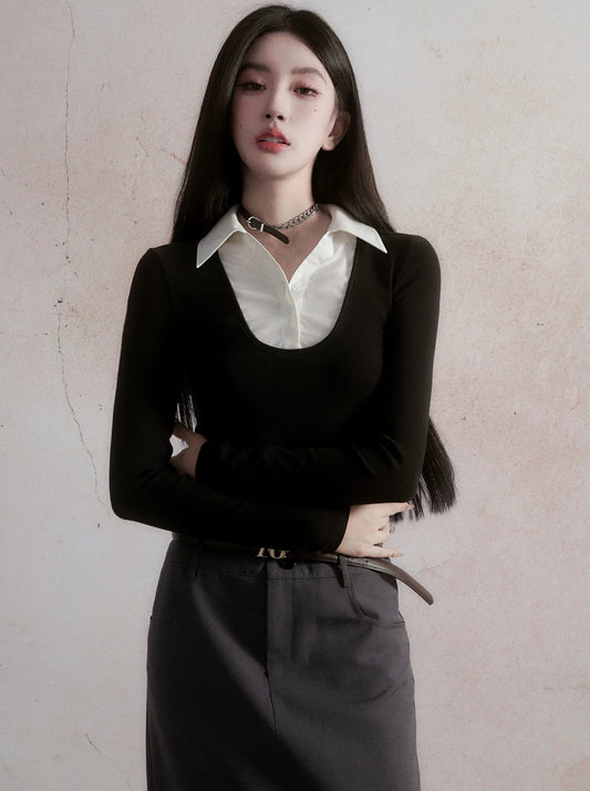 アメリカンレトロフェイクツーピースシャツニットトップス