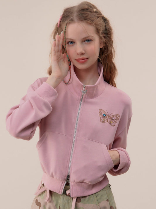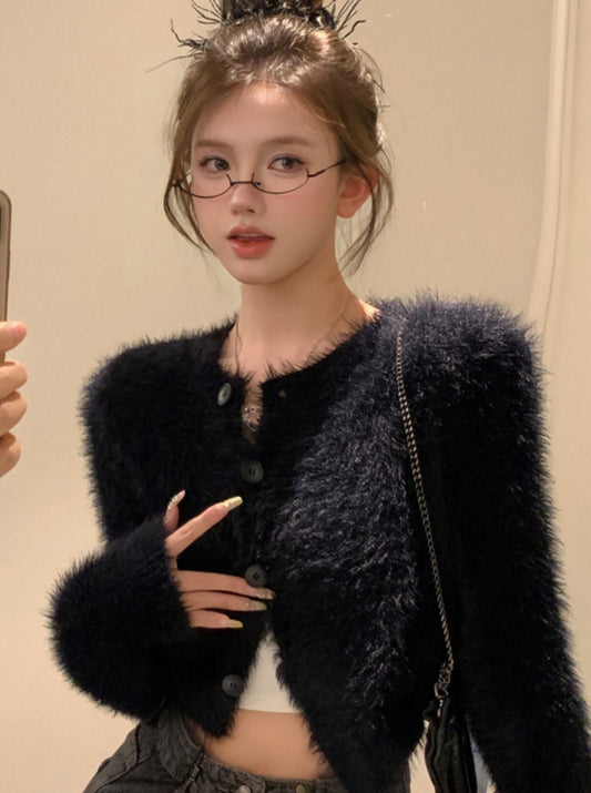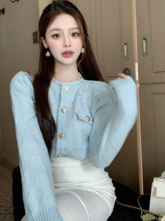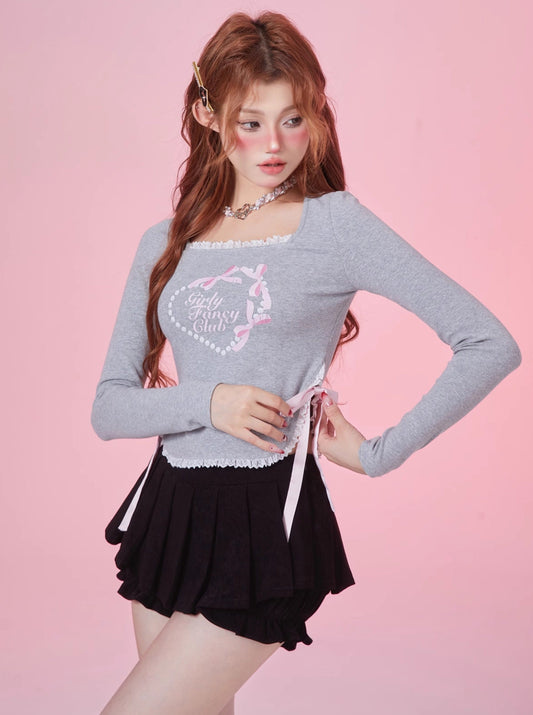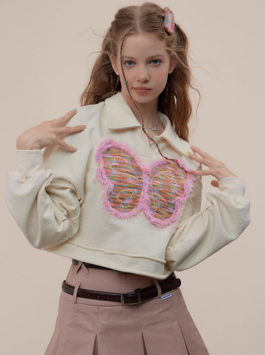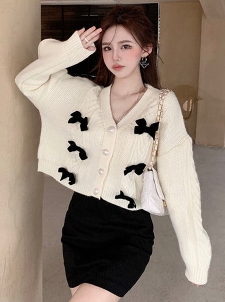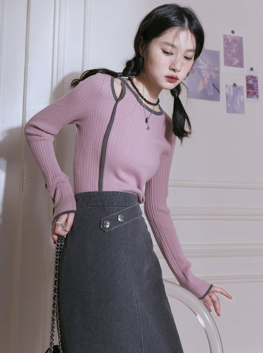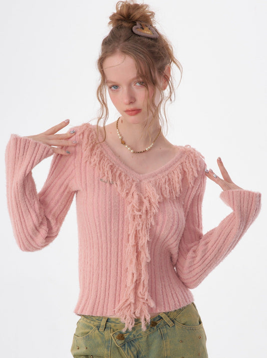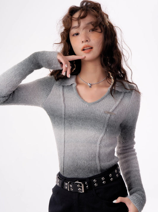 バタフライグラデーションオフショルダートランペットスリーブニットトップス