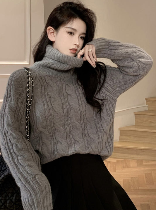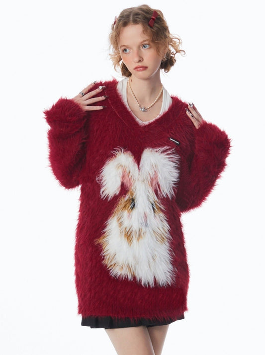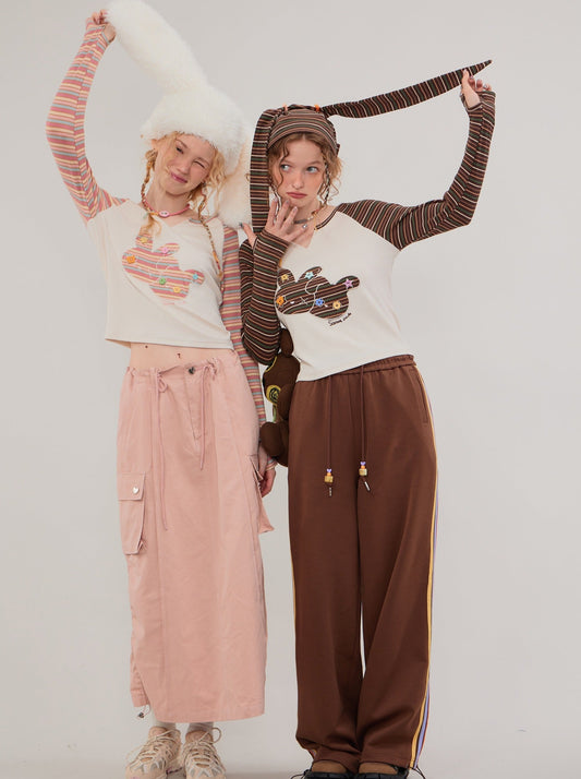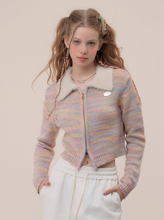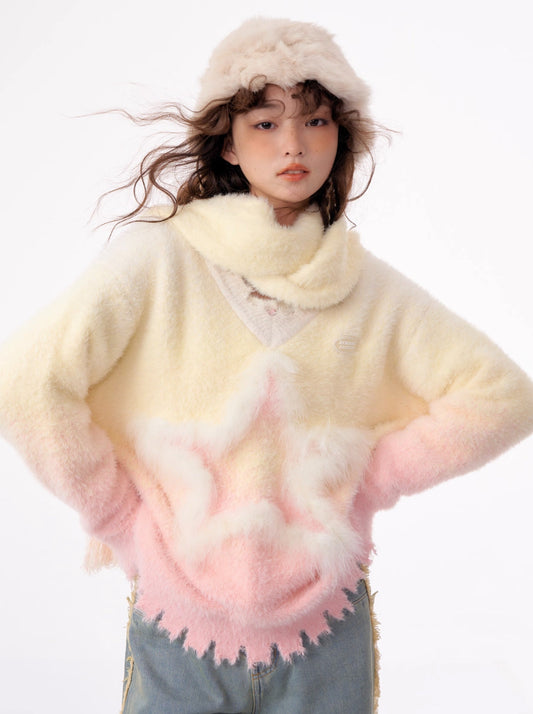 アメリカンレトロデザインピンクイエローグラデーションニット+グラデーションマフラー