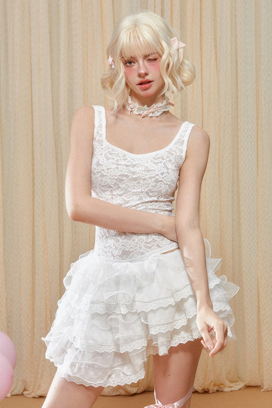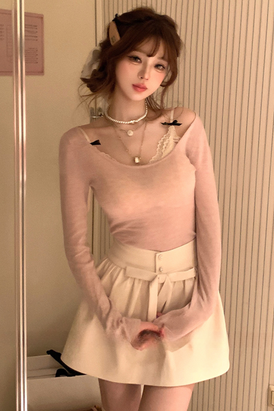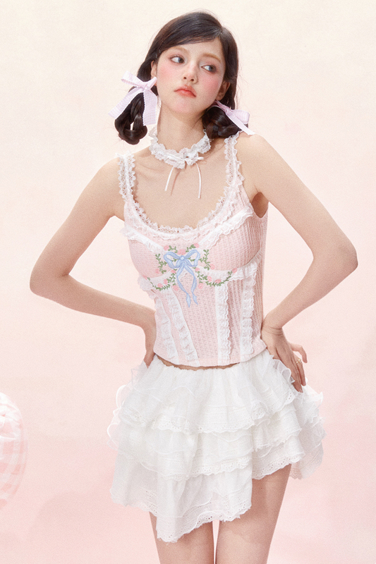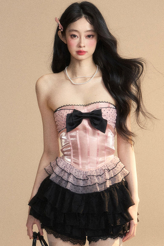 【予約商品】ドットメッシュレースリボンチューブトップス