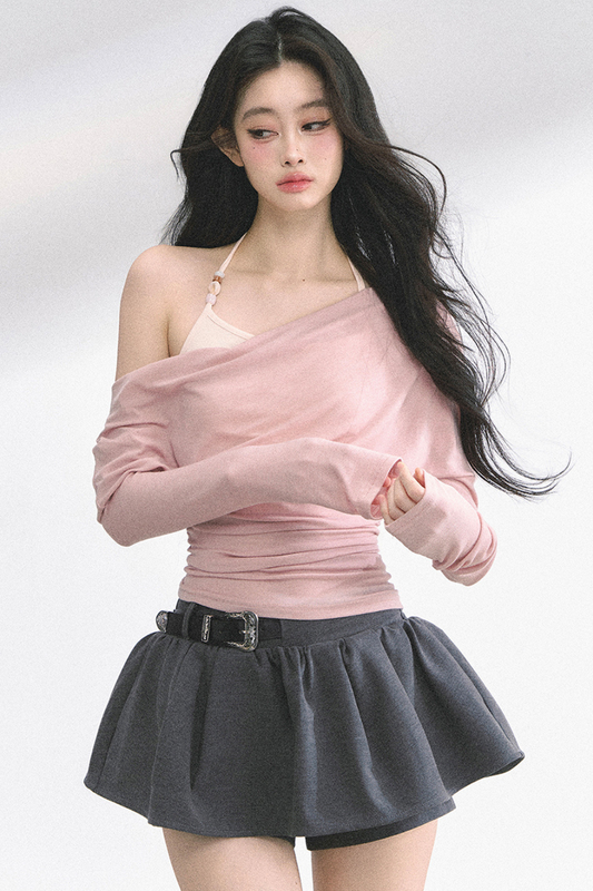 シアーメリノウールロングスリーブベーシックUネックトップス