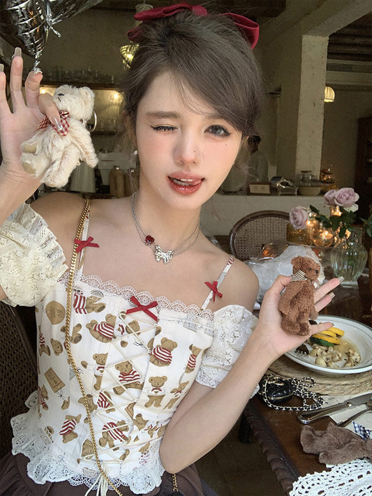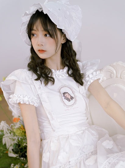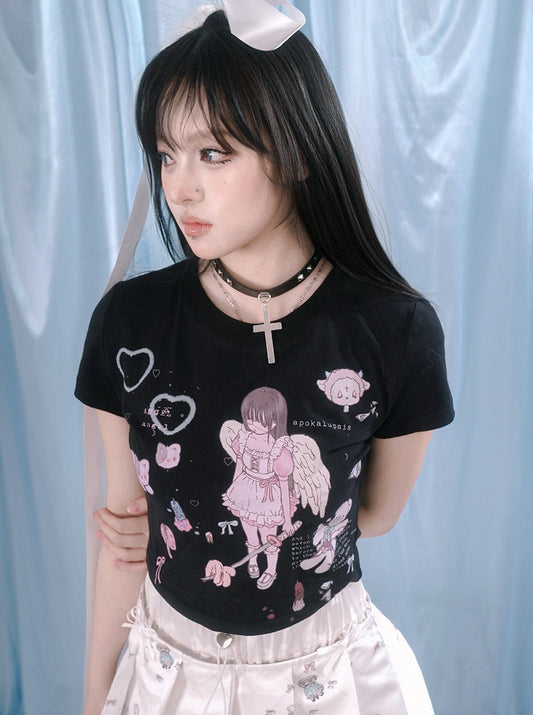 エンジェルガールベイビーイラストスクエアネックパフスリーブトップス