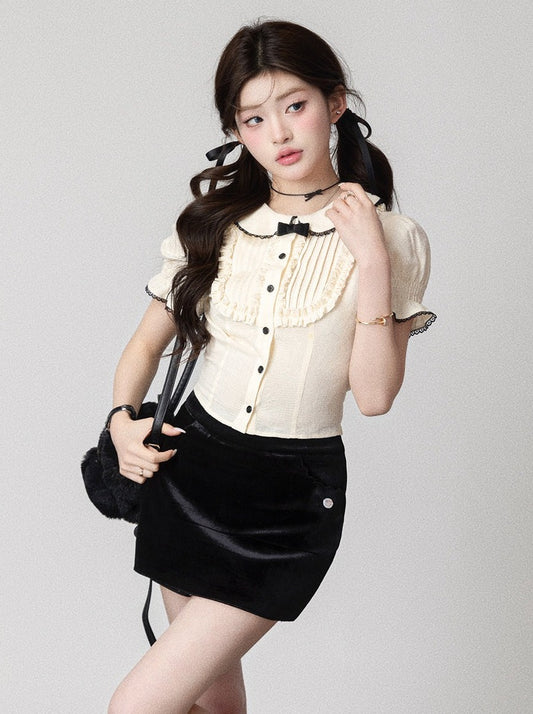 ドットショートサマーガーリーブラウス