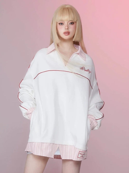 ストライプカラーブロックラペルトップオーバーサイズトレーナー