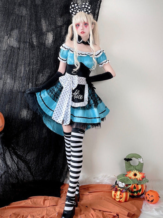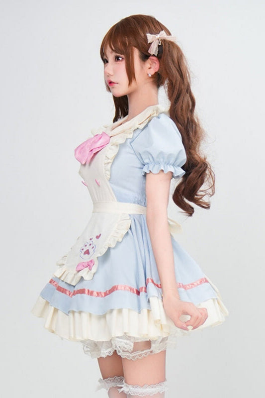 ピンクブルーロリメイドコスプレドレスセット