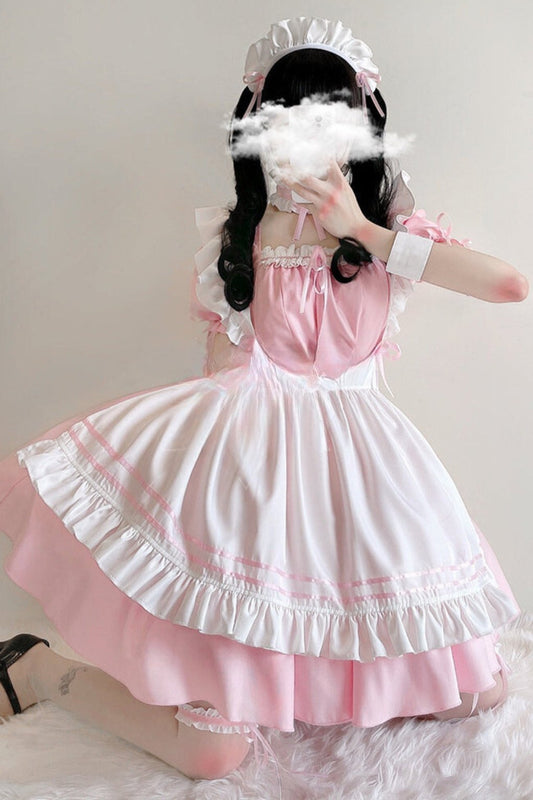 ショートスリーブピンクメイドドレスセット