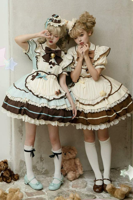 【予約商品】ティーパーティーショコラミントマッチャバブルエプロンドレス+スリーブ+ハット