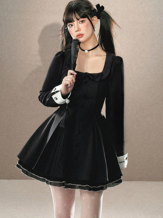 ポロカラーケープ+ウエストデザインワンピース【予約商品】