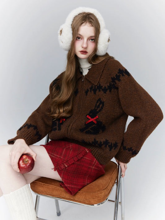 千鳥格子レトロブラウンウールジャケット+ベスト+スカート