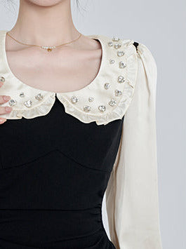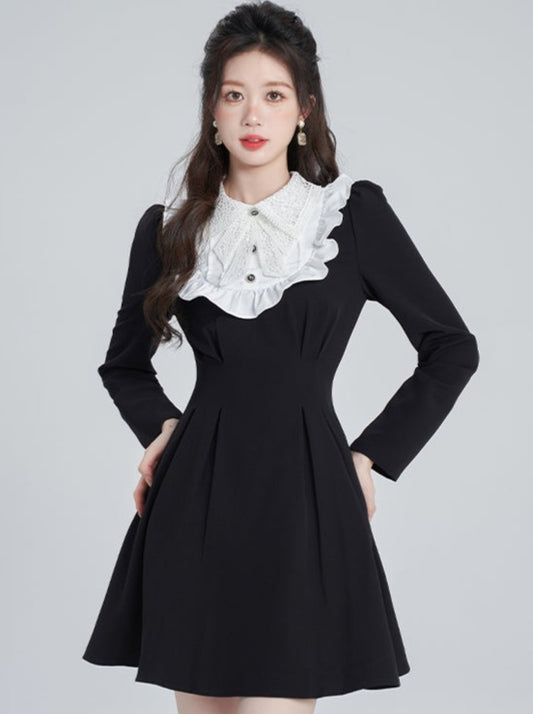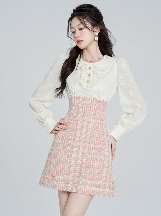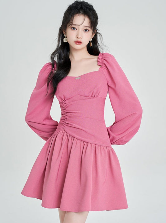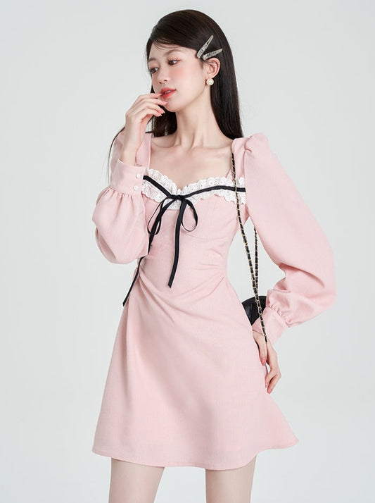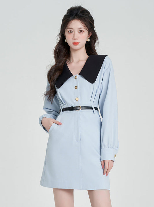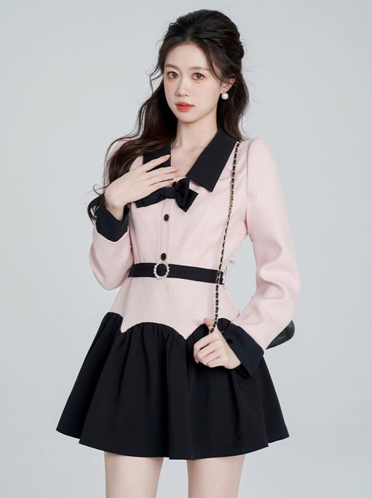 フレンチピンクベビードールカラーフェイクツーピースカレッジワンピース